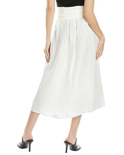 - Belted Linen-Blend Skirt in off white with pleated front and side seam pockets