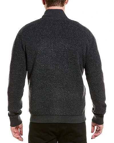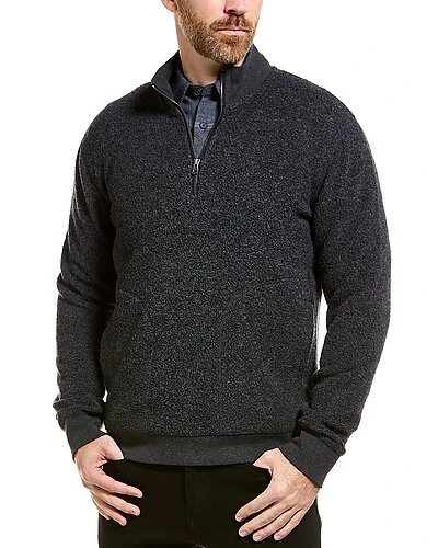 - Boucle Wool-Blend 1/4-Zip Mock Pullover in grey with ribbed trim