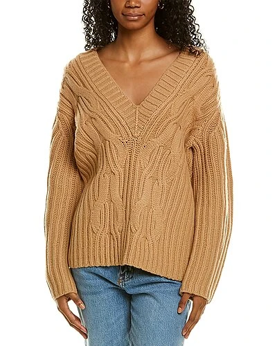- Cable Front V-Neck Wool & Cashmere-Blend Sweater in dune with mixed cable knit and V-neck