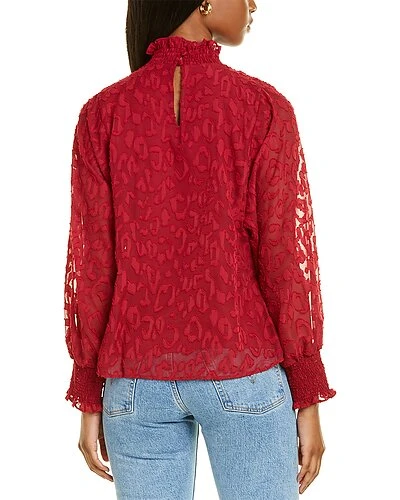 - Animal Jacquard Top in deep red with smocked mock neck and cuffs