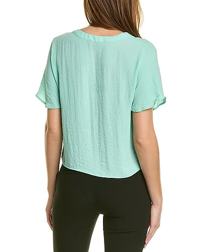 - Button-Down Tie-Front Blouse in agave with V-neck, flutter sleeves and self-tie front hem