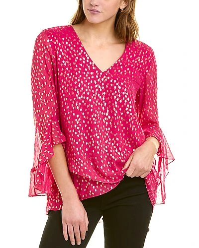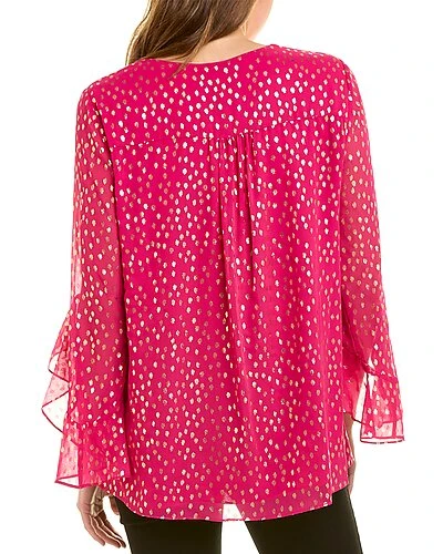 - Dash Dot Tunic in fuchsia rose with flutter sleeves, shirred back, and tulip front high-low hem