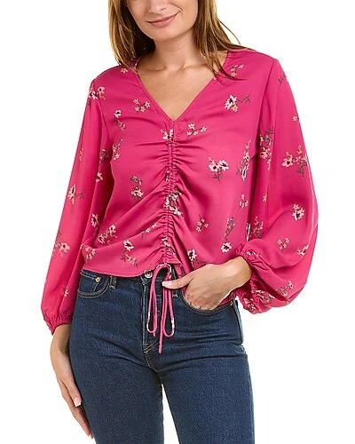 - Drawstring Blouse in fuchsia pink with ruched drawstring front and blouson sleeves