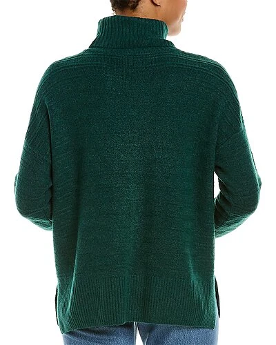 - Extended Shoulder Sweater in wise with rolled turtleneck, dropped-shoulder sleeves, ribbed trim and side slits at hem