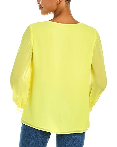 - Flare Cuff Top in bright lemon with V-neck and sheer sleeves with smocked flare cuffs