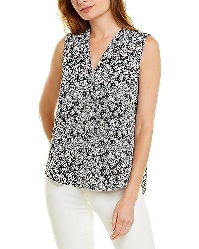 - Floral Blouse in black with V-neck and high-low hem