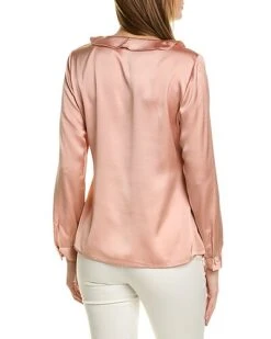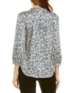 - Flutter Sleeve Henley Blouse in canyon blue with V-neck, pintuck detailing, ruffle cuffs and curved hem