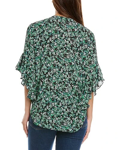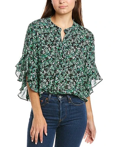 - Flutter Sleeve Pintuck Field Blouse in vivid green with split neck, elbow-length sleeves, and shirttail hem
