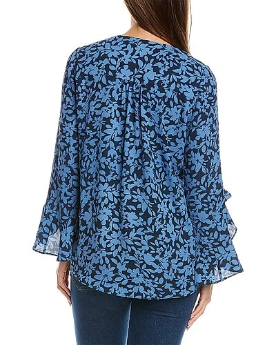 - Flutter Sleeve Top in vintage blue with V-neck and flutter cuffs