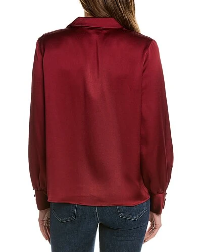 - Collared Shirt in brickstone with spread collar, V-neck, and button cuffs