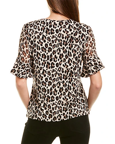 - Mixed Media Flutter Top in rich black with mixed media design and elbow-length sleeves with flared cuffs