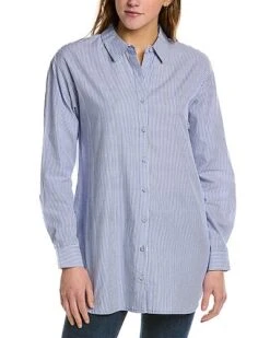- Pinstripe Shirt in fresco blue with spread collar and button cuffs