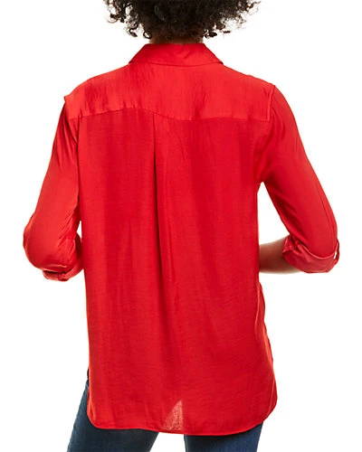 - Relaxed Top in fireside with dual chest pocket, barrel cuffs, roll-up tabs, box pleat at back, and shirttail hem