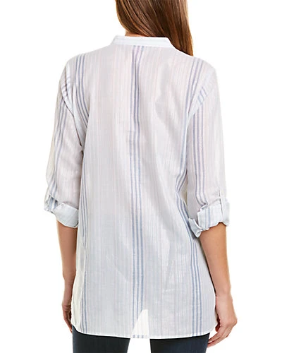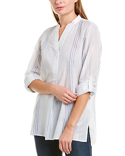 - Roll Tab Tonal Stripe Top in stellar blue with split neckline and roll-up tabs at sleeves