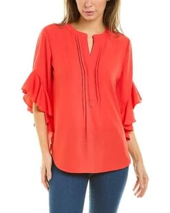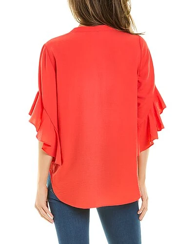 - Ruffle Sleeve Blouse in radiant red with split neckline, pintuck detailing and ruffle sleeves