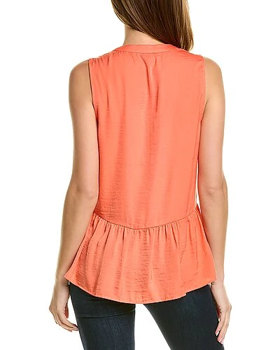 - Rumpled Top in bright coral with V-neck, shirred shoulders, and shirred waist