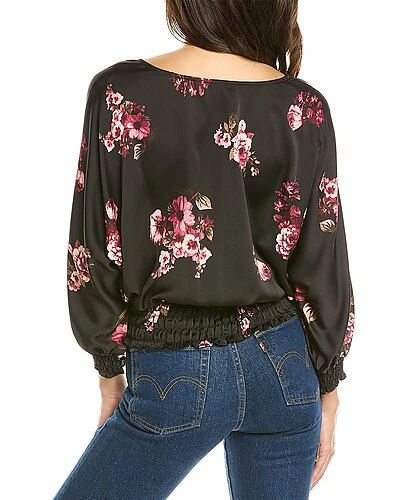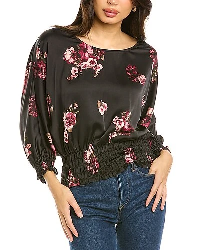 - Smocked Bottom Victoria Top in rich black with dolman sleeves with smocked cuffs and hem