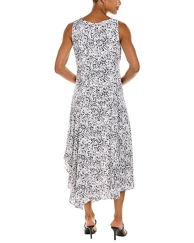 - Snake Whispers Maxi Dress in ultra white with cowl neck and asymmetrical flutter hem