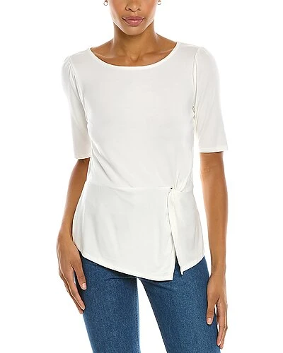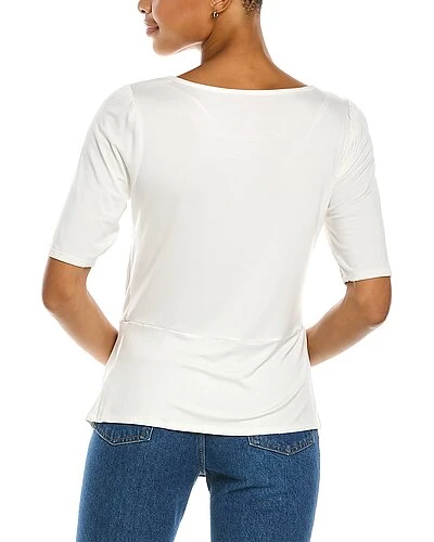 - Twisted Hem Top in new ivory with elbow-length sleeves