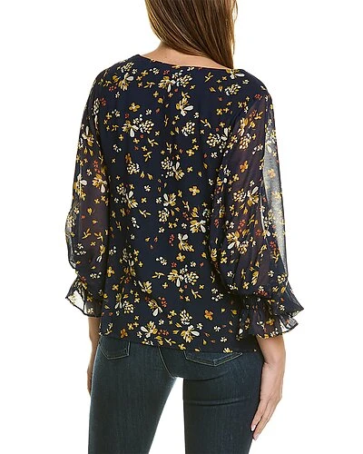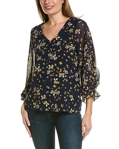 - Wayward Floral Blouse in classic navy with balloon sleeves and smocked cuffs