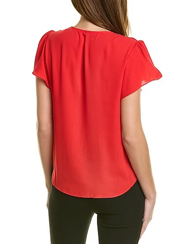 - Y-Neck Blouse in red hot with flutter sleeves and shirttail hem