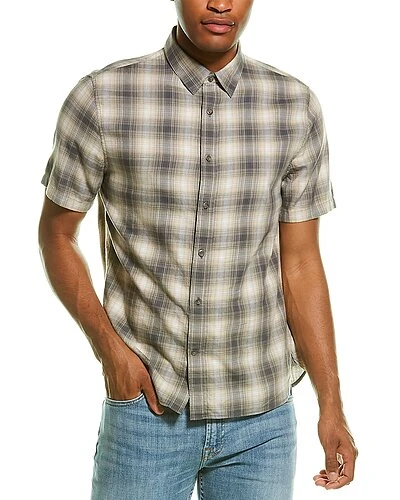- Classic Fit Oceanview Plaid Shirt in grey with spread collar