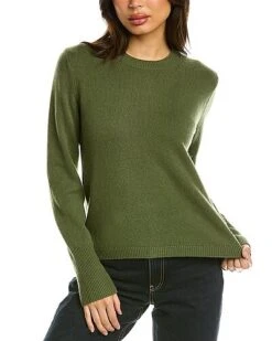 - Crewneck Wool & Cashmere-Blend Pullover in clover with crewneck and ribbed trim
