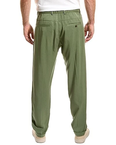- Cuffed Trouser in yucca pine with elasticized back waist, belt loops, pleated front, four-pocket styling, and cuffed hem