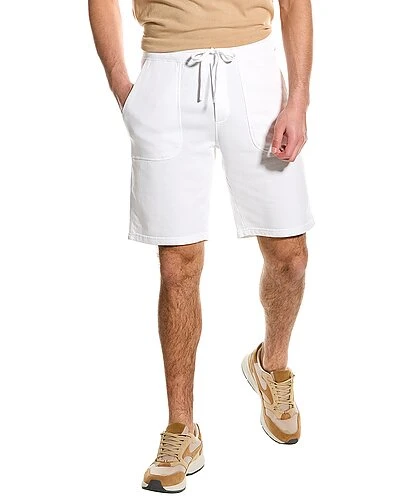 - Drawstring Short in white with elasticized drawstring waist, dual front pockets and back right pocket