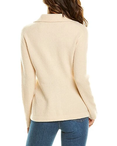 - Fitted Polo Wool & Cashmere-Blend Cardigan in oat cream with ribbed collar