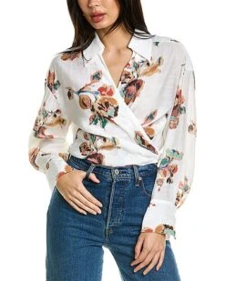 - Floral Tie Wrap Shirt in optic white with dropped-shoulder sleeves and button cuffs