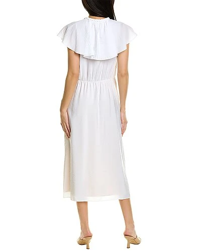 - Flutter Sleeve Wrap Dress in optic white with braided collar and ruffled cape neckline