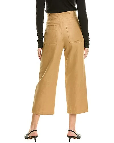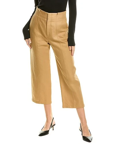 - Linen-Blend Casual Pant in pale walnut with twill design, paperbag waist, and four-pocket styling