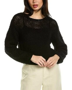 - Loose Knit Pullover in black with dropped-shoulders sleeves