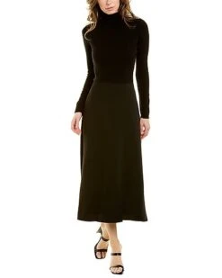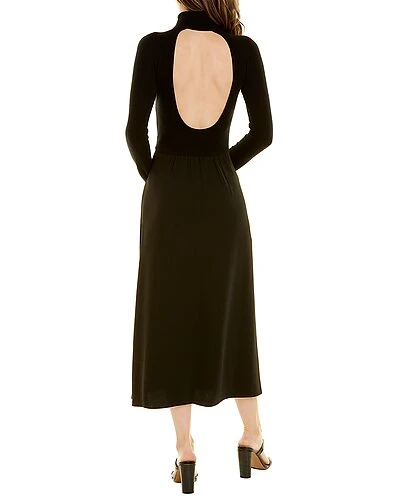 - Mixed Media Wool & Cashmere-Blend Open-Back Dress in black with high neck and tulip hem