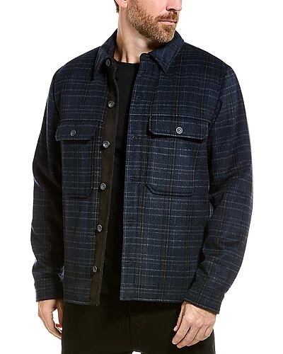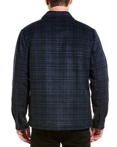 - Plaid Jacket in blue with spread collar, dual chest pockets, and button cuffs