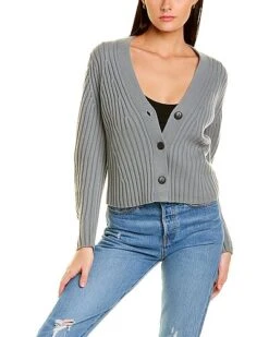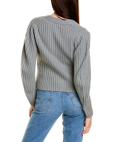 - Poet Sleeve Wool & Cashmere-Blend Cardigan in mineral sea