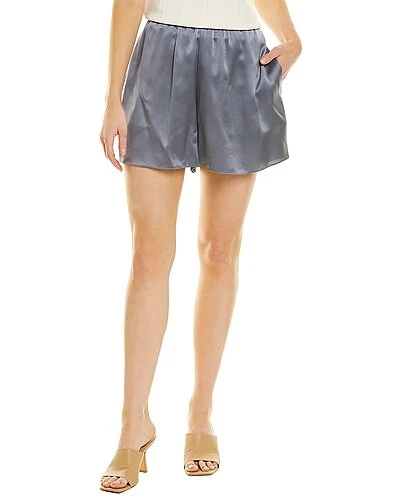 - Pull-On Silk Short in iris blue with dual side on-seam pockets and elasticized waistband