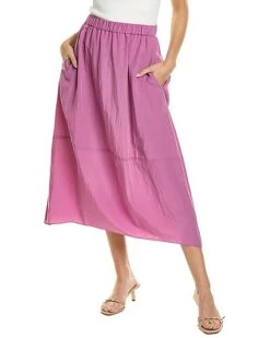 - Pull-On Skirt in camellia with elasticized waist and side seam pockets