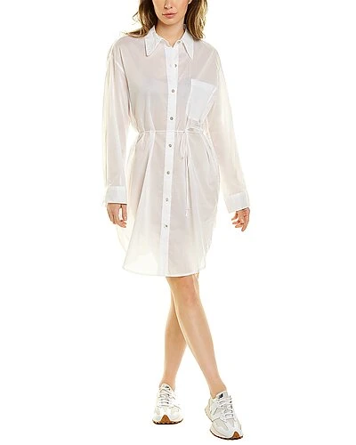 - Relaxed Shirtdress in optic white with inside left chest pocket, button cuffs, and shirttail hem