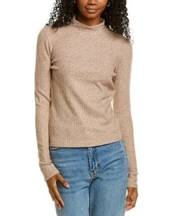- Rib Mock Neck Top in wheat with ribbed design and mock neck