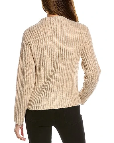 - Ribbed Funnel Neck Alpaca & Wool-Blend Sweater in beige with ribbed knit, dropped-shoulder sleeves and funnel neck