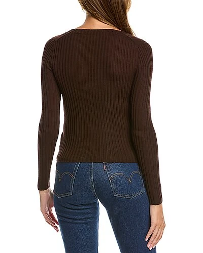 - Ribbed Square Neck Wool Sweater in espresso with ribbed knit and square neckline