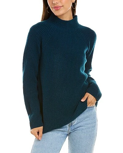 - Ribbed Wool & Cashmere-Blend Pullover in peacock with mock neck