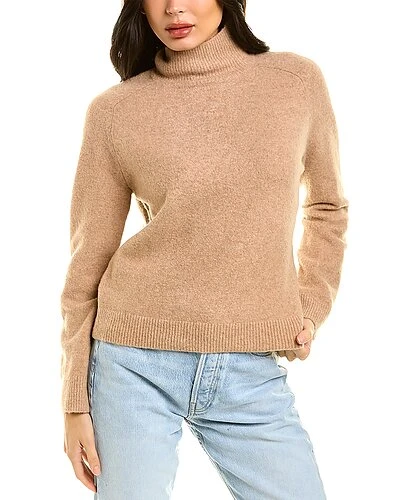 - Saddle Marled Turtleneck Wool & Alpaca-Blend Sweater in brittle/camel with turtleneck and ribbed trim