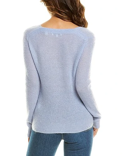 - Scoop Neck Mohair & Wool-Blend Pullover in light periwinkle blue with ribbed knit and scoop neck
