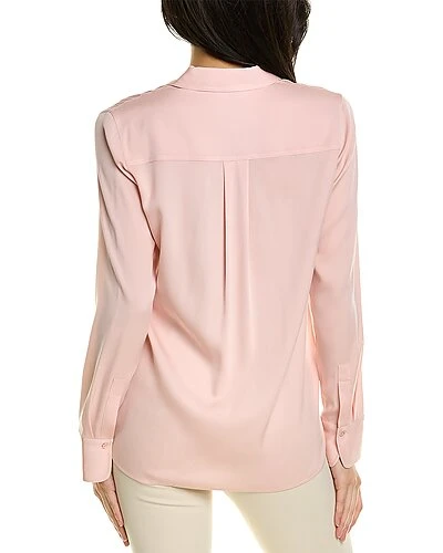 - Slim Fitted Silk-Blend Blouse in petal clay with button cuffs and box pleat at back