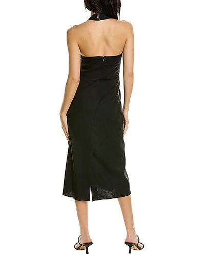 - Square Neck Linen-Blend Halter Dress in black with square neck and vented back hem