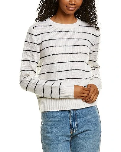 - Striped Fitted Cashmere Sweater in off white/black with crewneck and ribbed trim