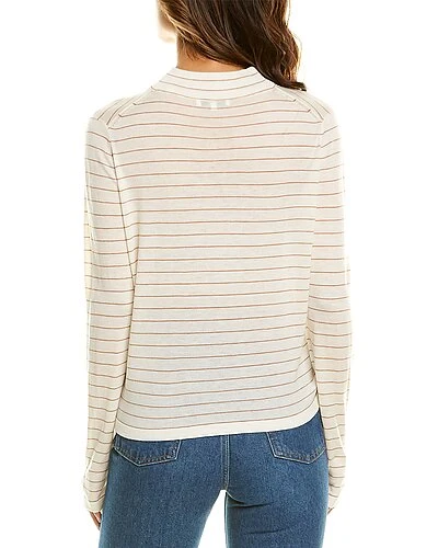 - Striped Saddle Wool & Cashmere-Blend Pullover in off white/vicuna with mock neck and cropped hem